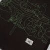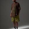 Etiqueta bordada próxima a barra e etiqueta lateral.