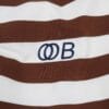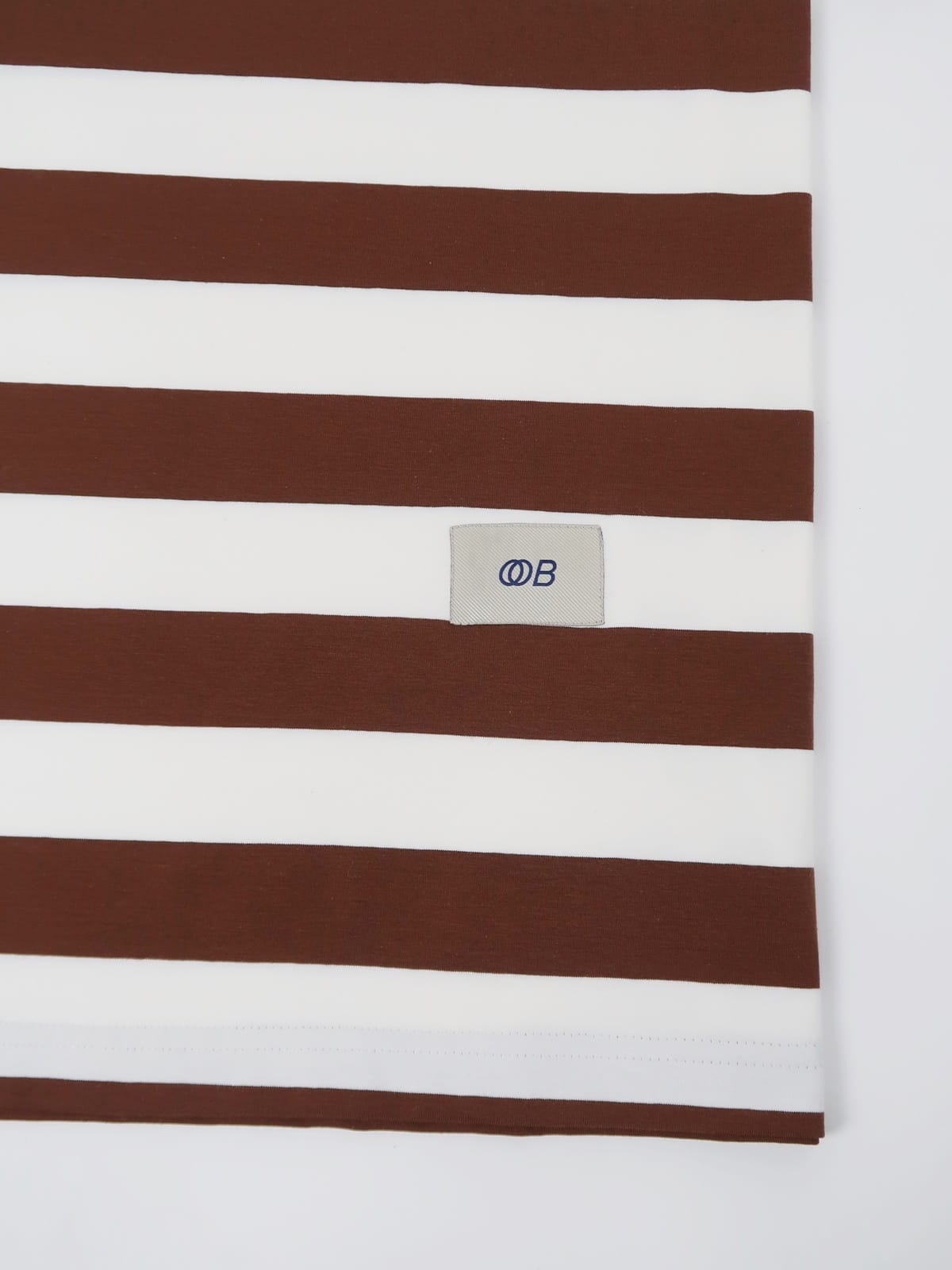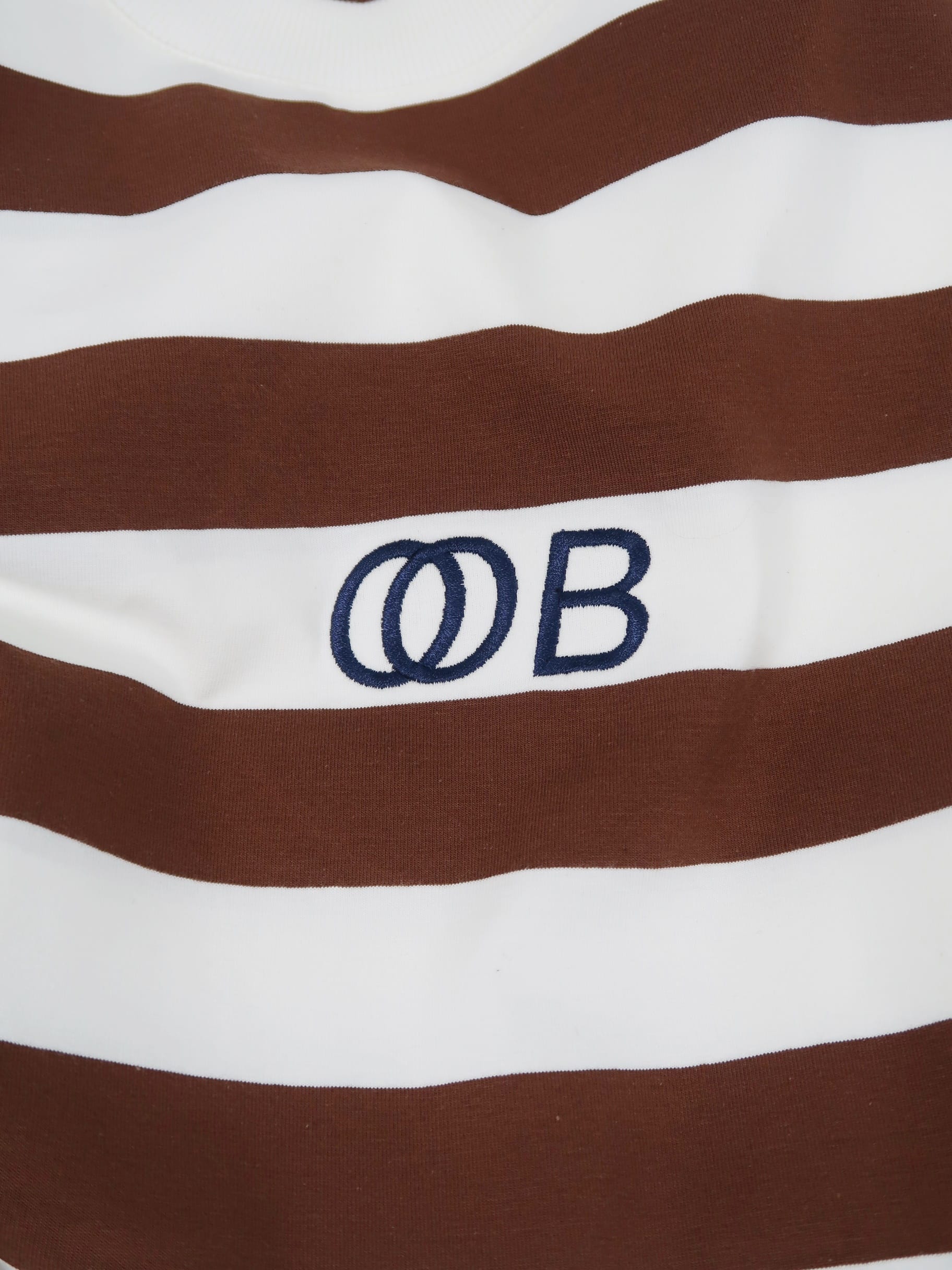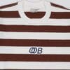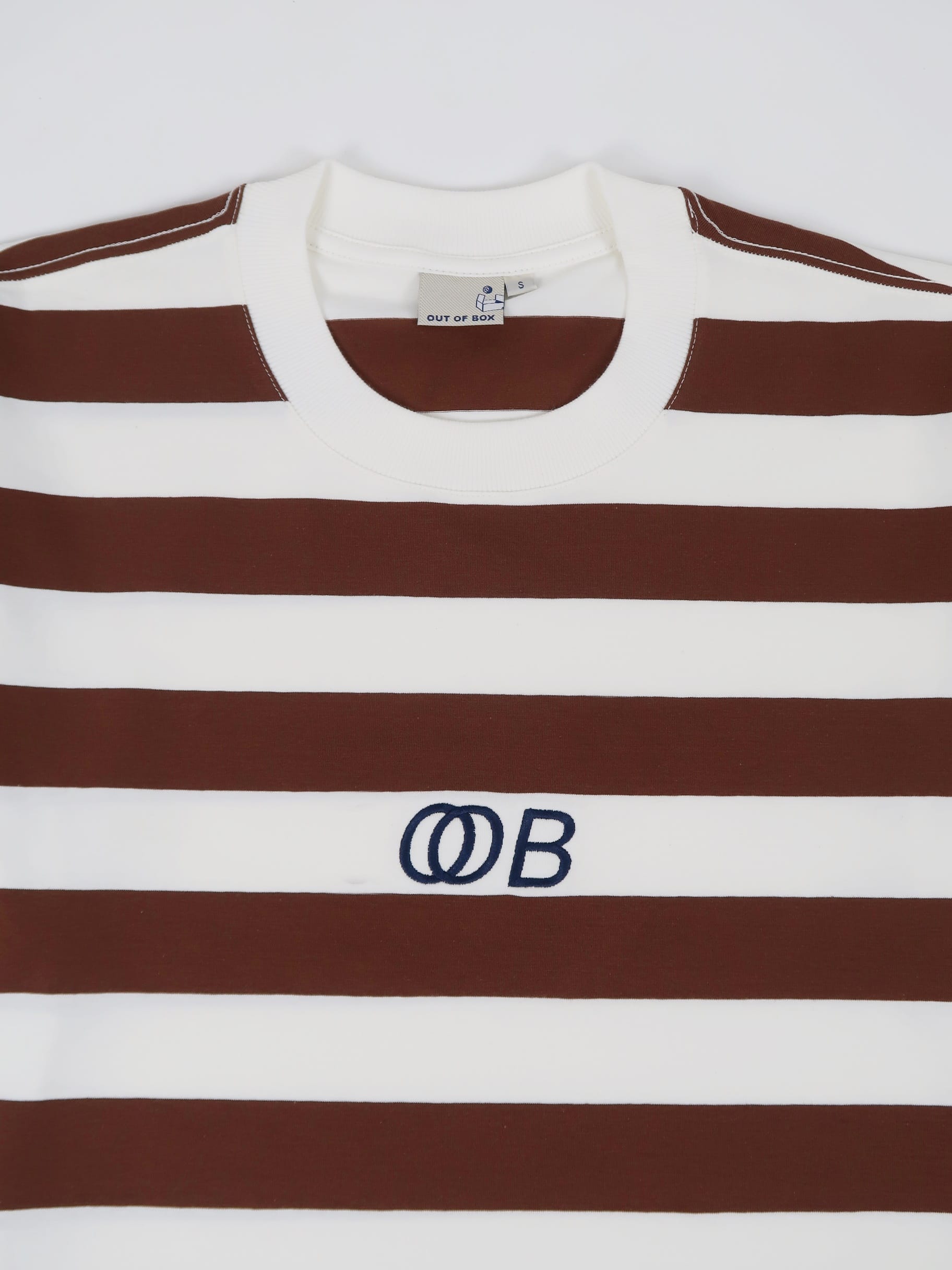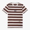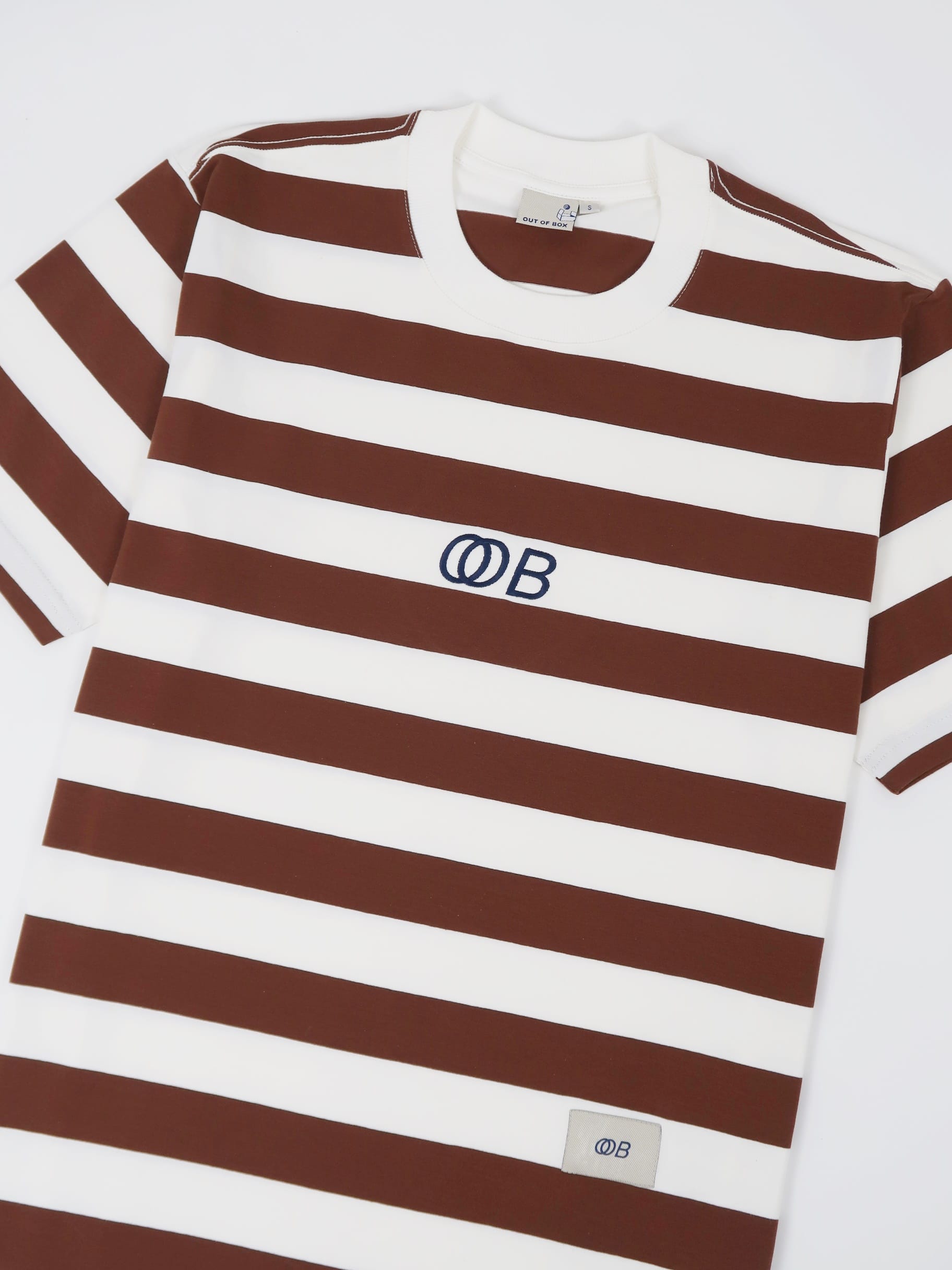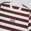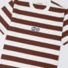 Camiseta confeccionada em modelagem tradicional em tecido 100% algodão 180GSM listrada nas cores off white & marrom.