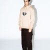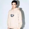 Moletom Hoodie ( Não contém bolso canguru ) confeccionado em tecido 50% Algodão, 50% Poliéster, 370GSM na cor bege, possui capuz forrado com cordão para regulagem, silk frontal em tinta puf, etiqueta bordada próxima a barra.